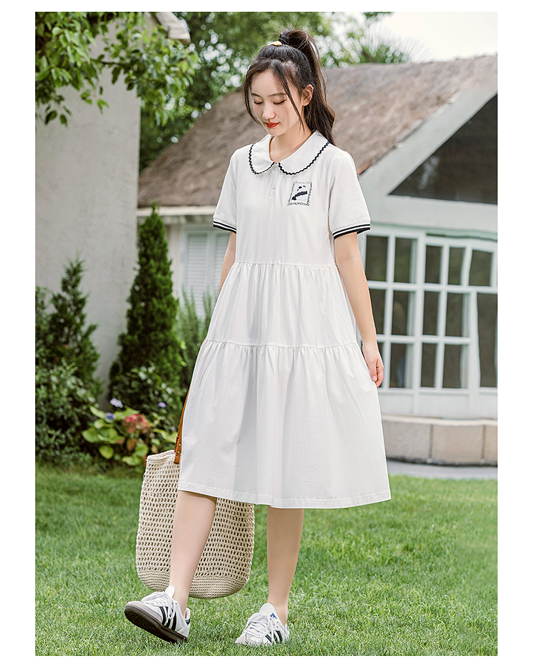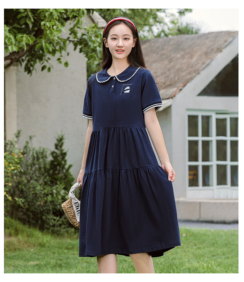 7053少女连衣裙夏季新款高初中学生运动时尚POLO裙学院风长款裙子
