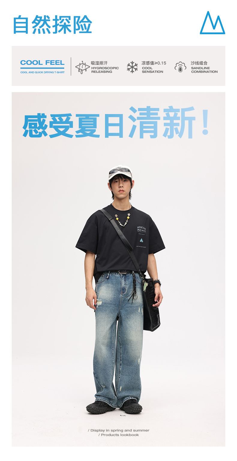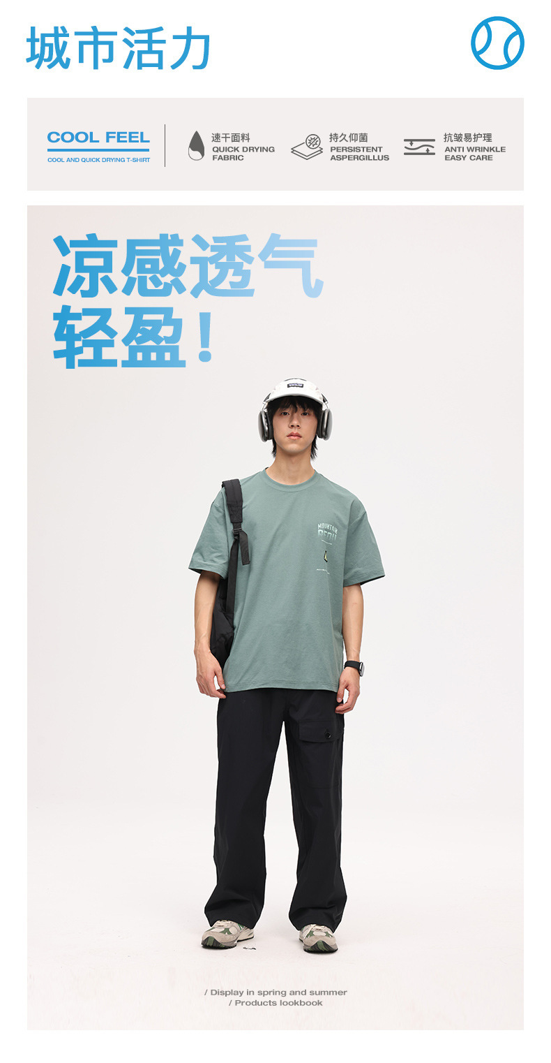 夏季薄款ins潮牌宽松运动速干男士短袖圆领T恤透气印花潮流上衣服