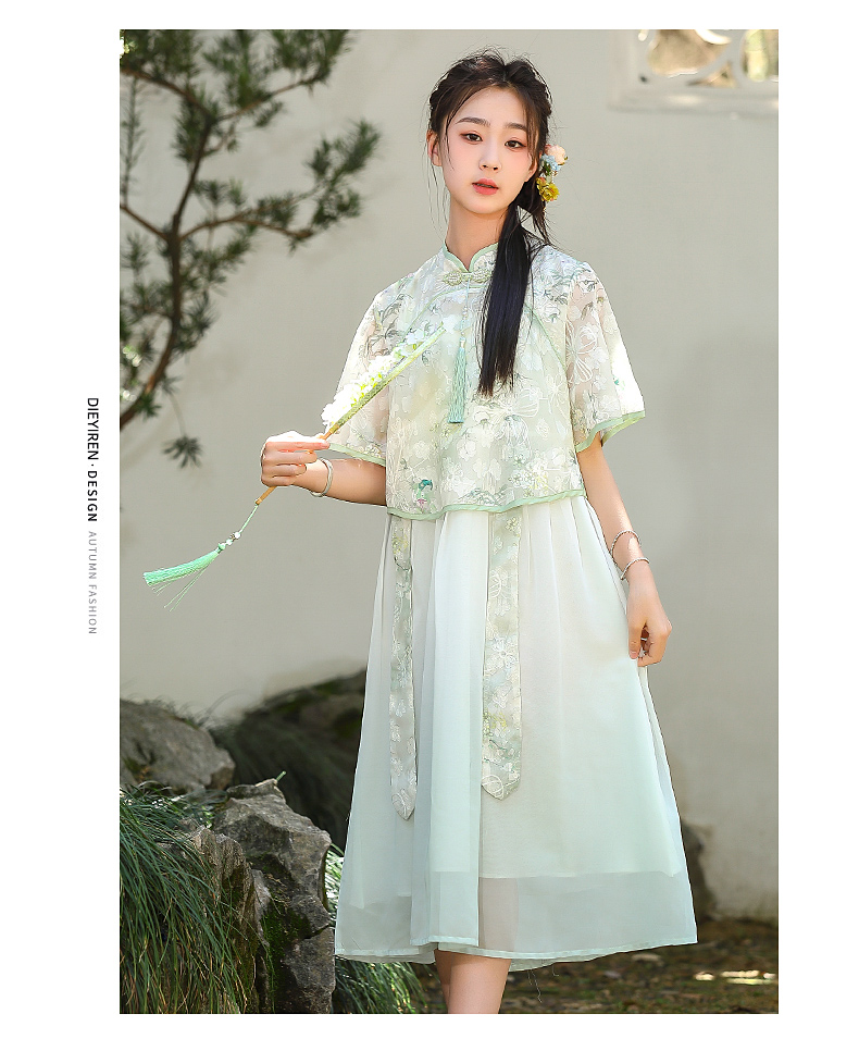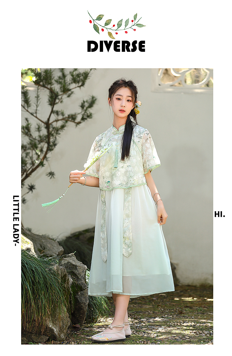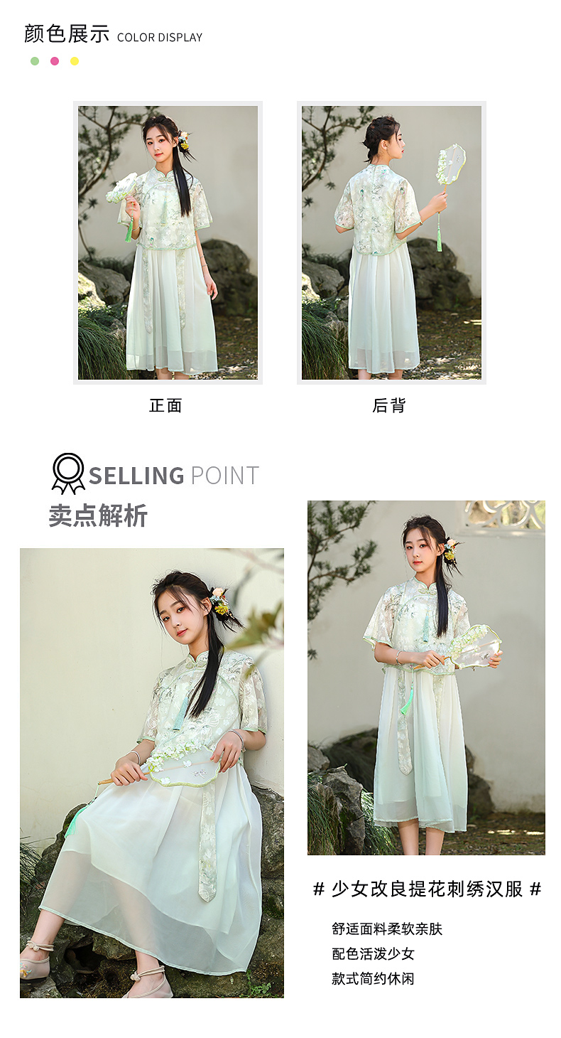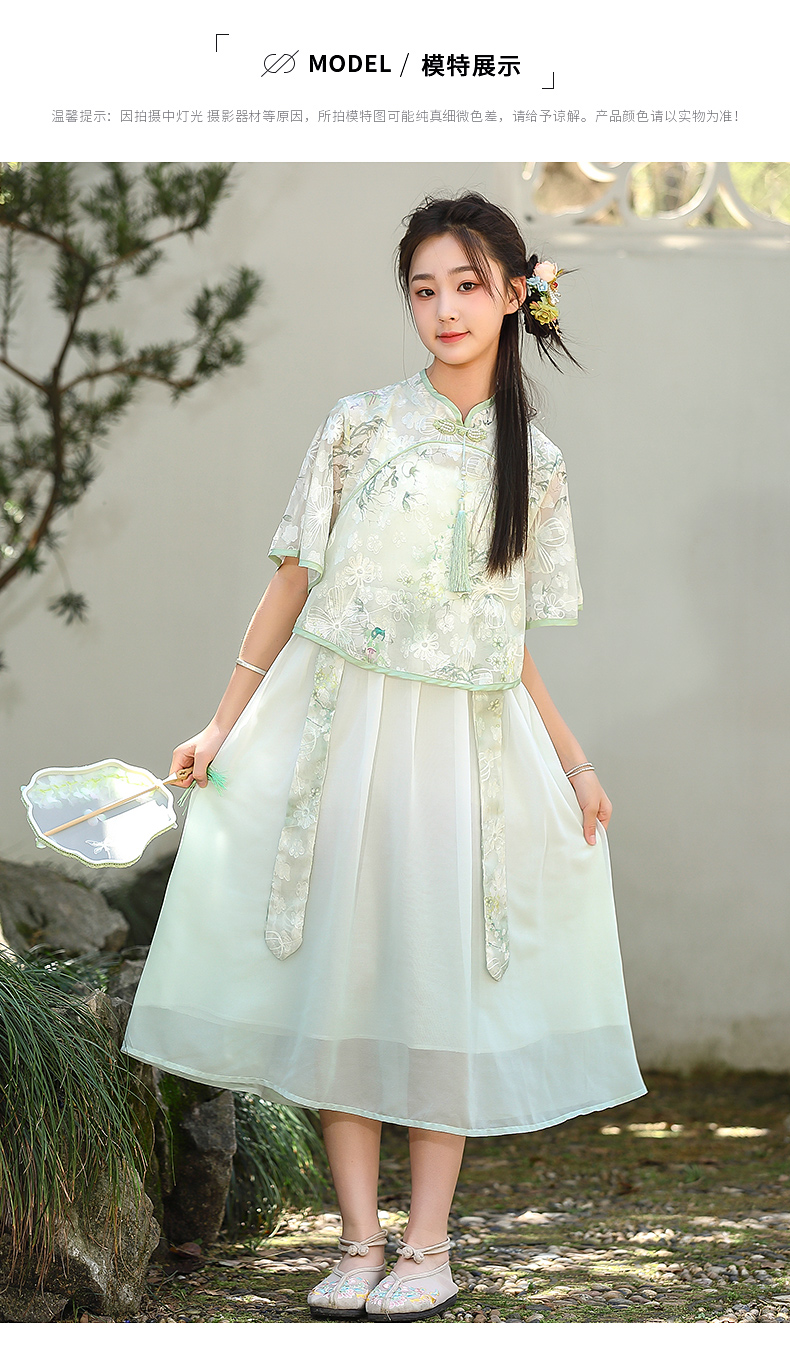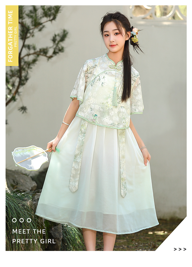 7025少女新中式民国风初中改良旗袍连衣裙汉服套装大童夏季公主裙
