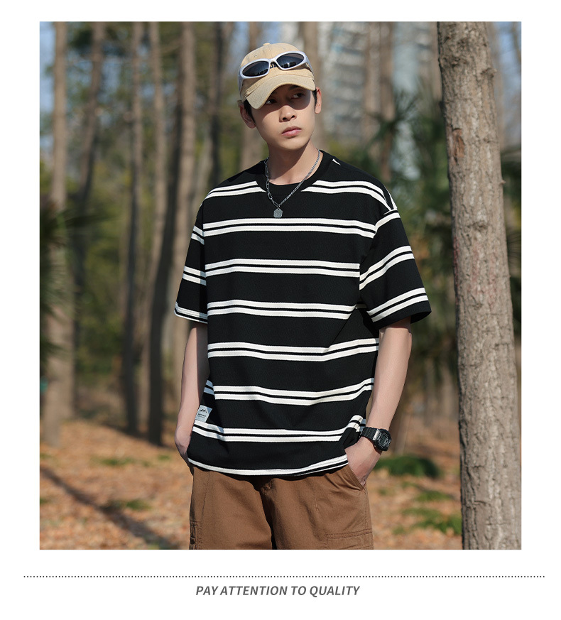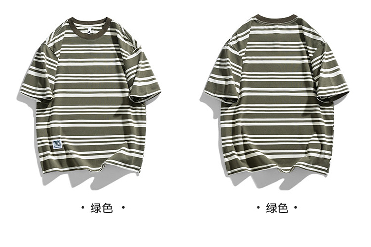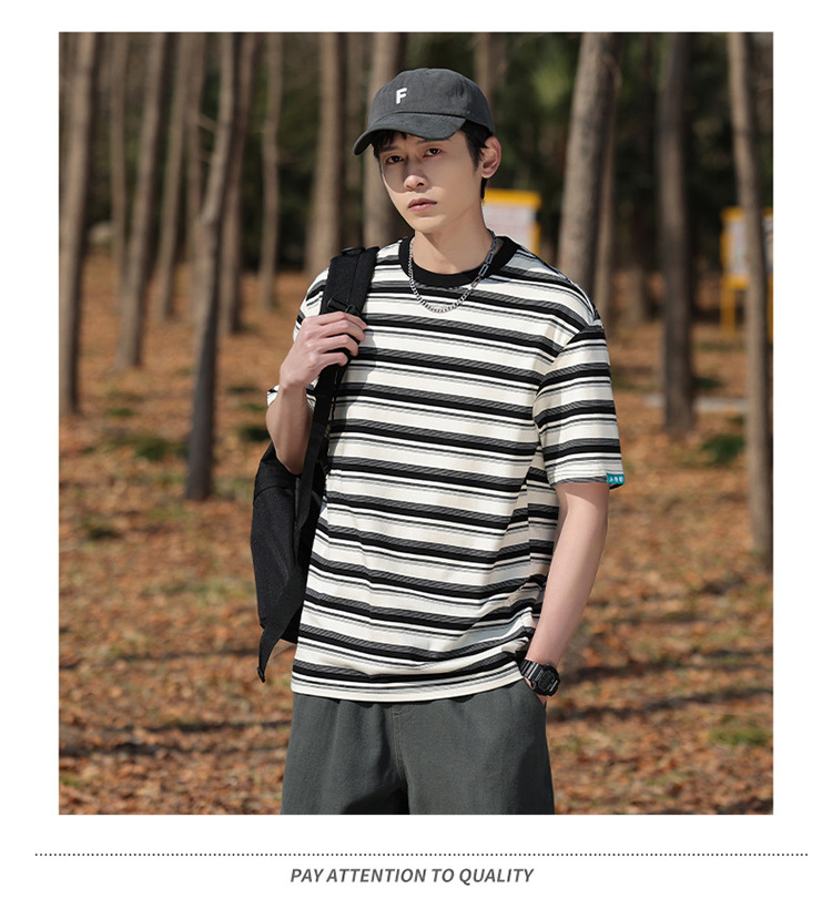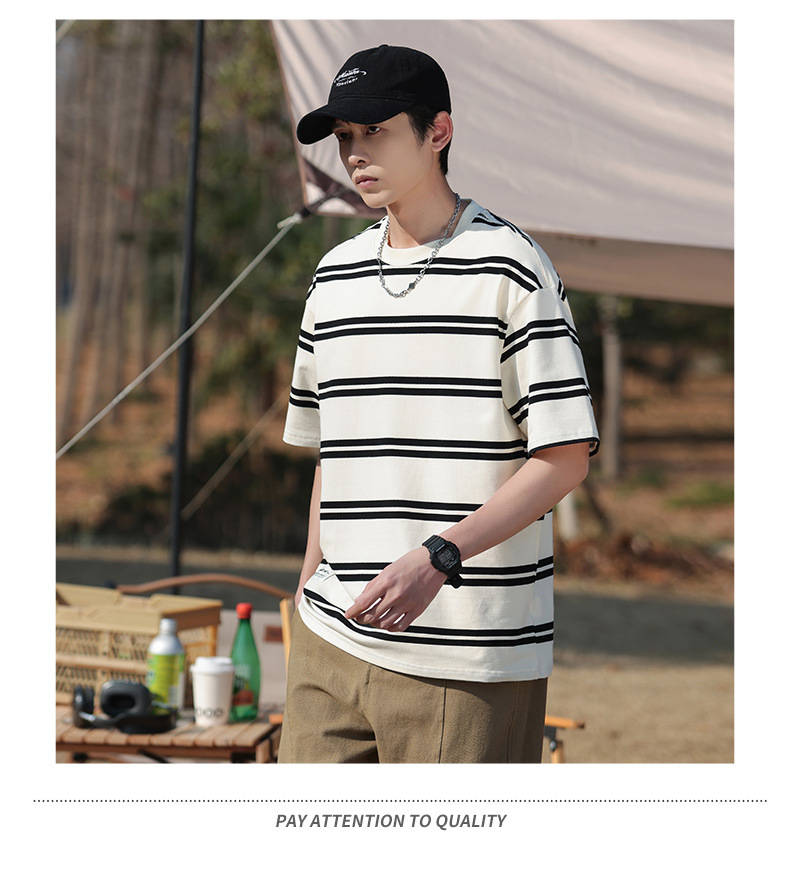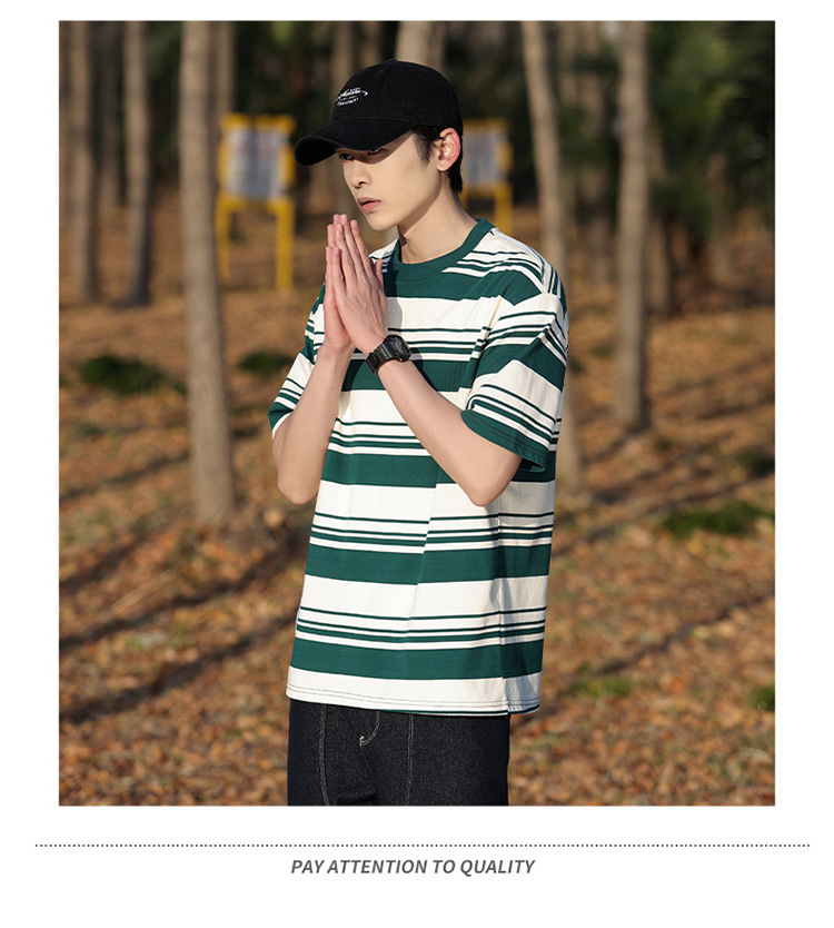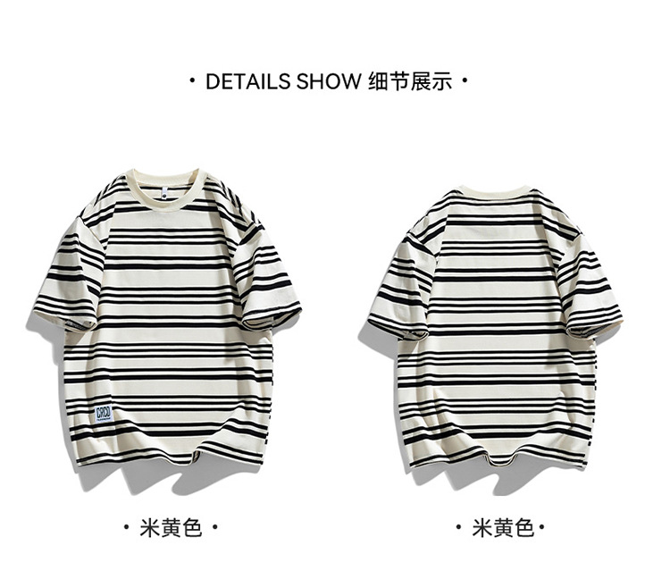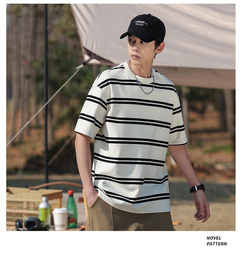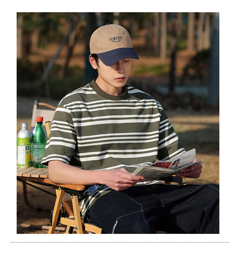 美式潮牌条纹插肩袖短袖男夏季新款230g重磅圆领宽松休闲T恤上衣