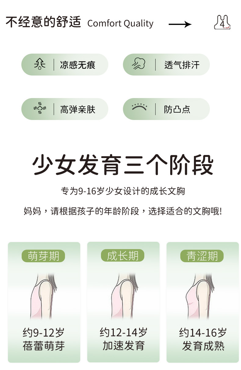 无痕发育期少女内衣小背心学生可爱大女童防凸点第一阶段文胸夏季