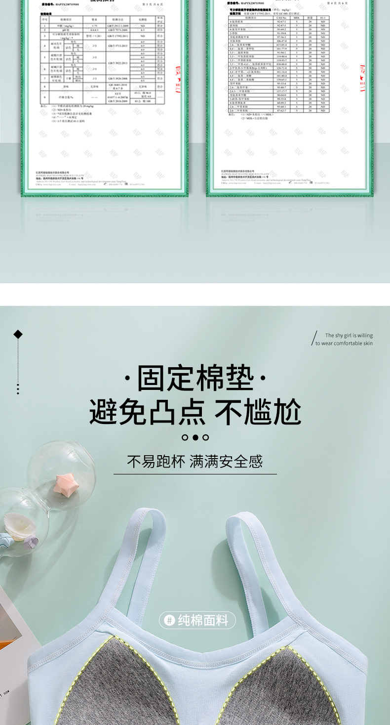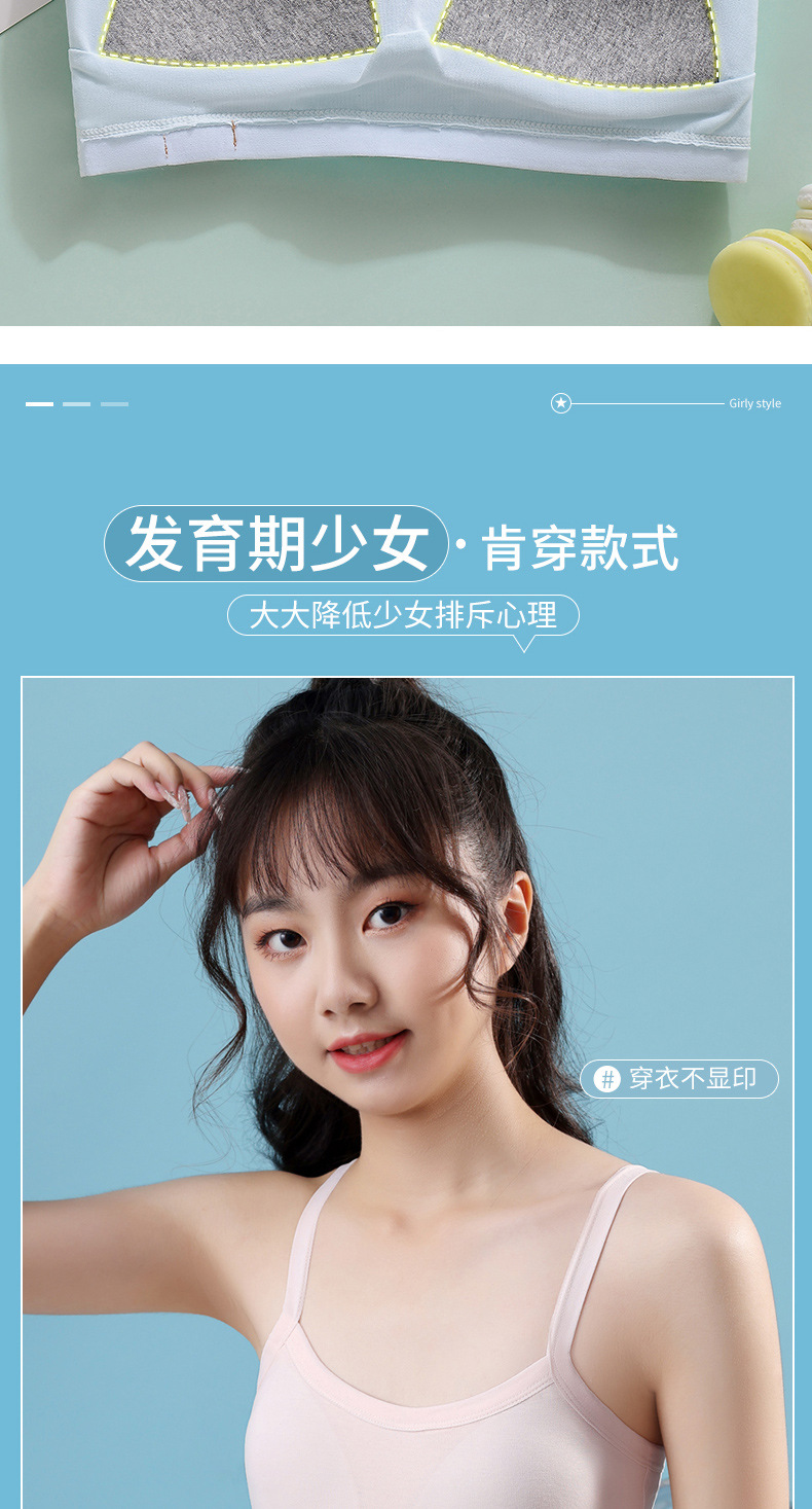 纯棉少女青春期学生文胸内衣儿童发育期防走光固定杯初中生小背心