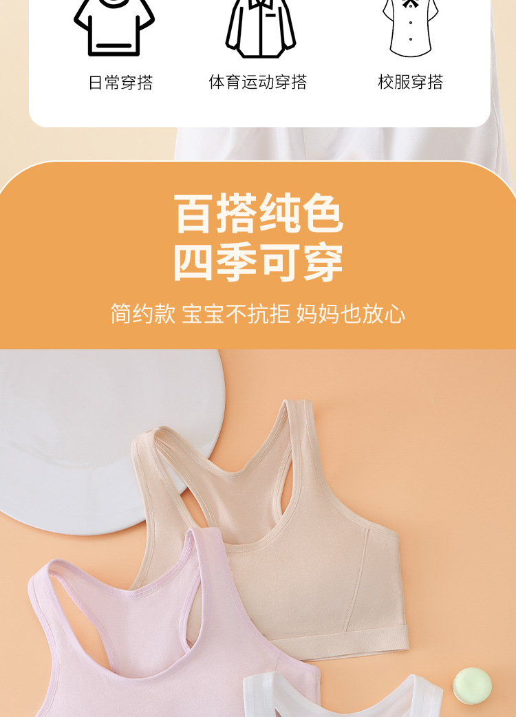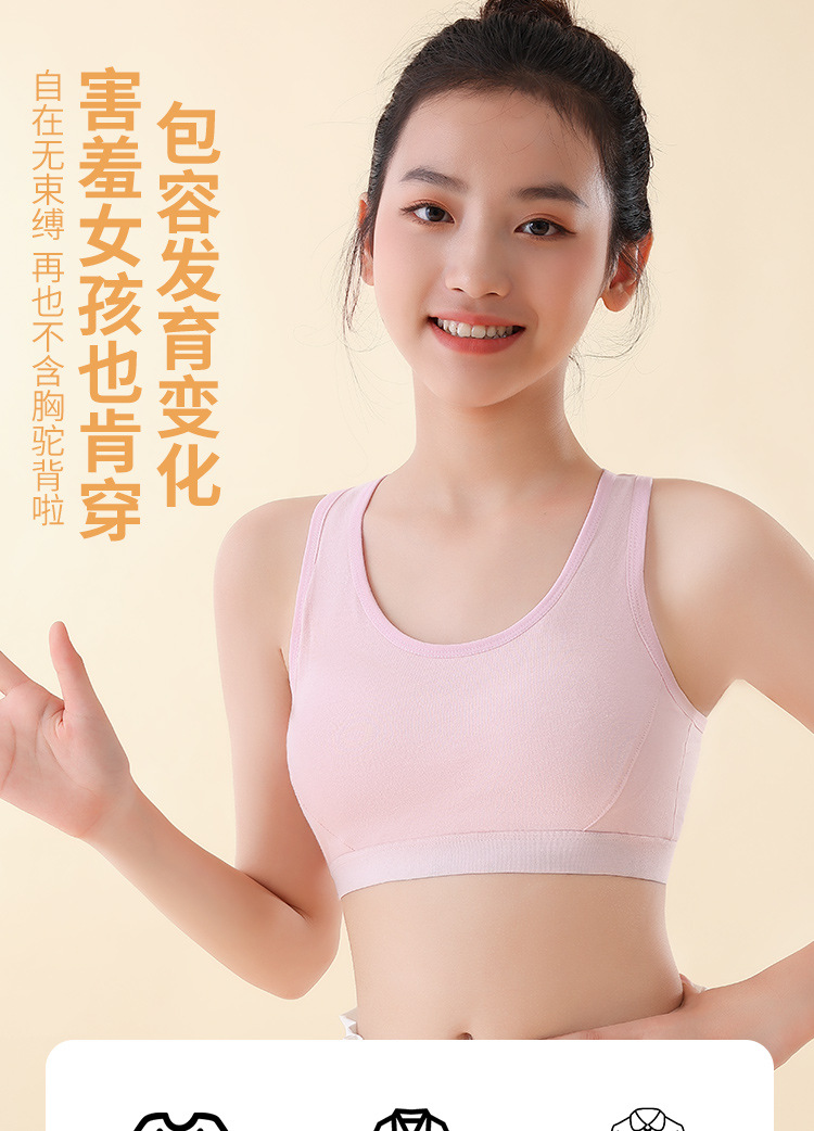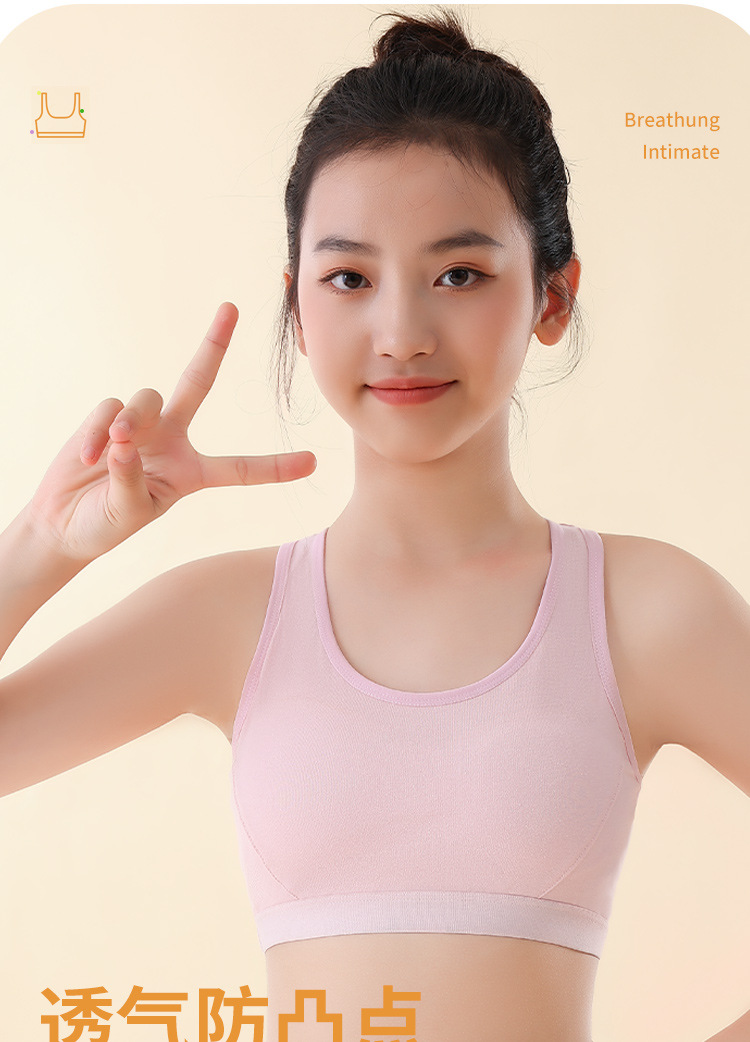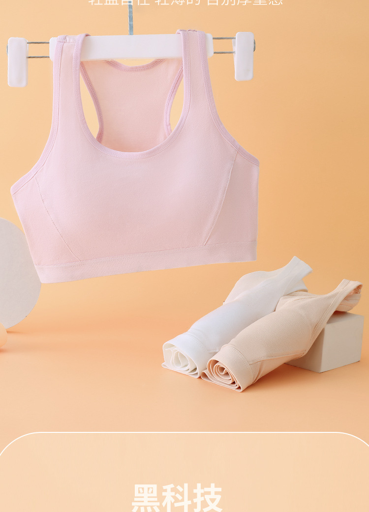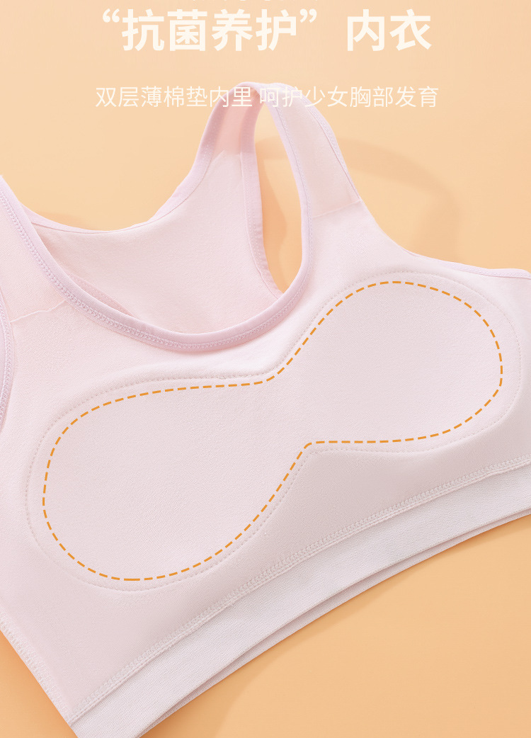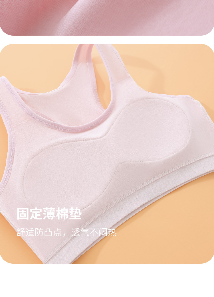 女童发育期纯棉少女文胸小学初中生固定杯运动防震背心无钢圈内衣