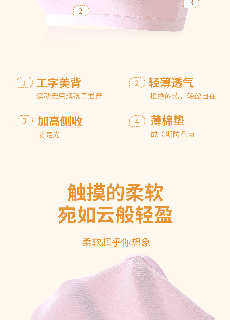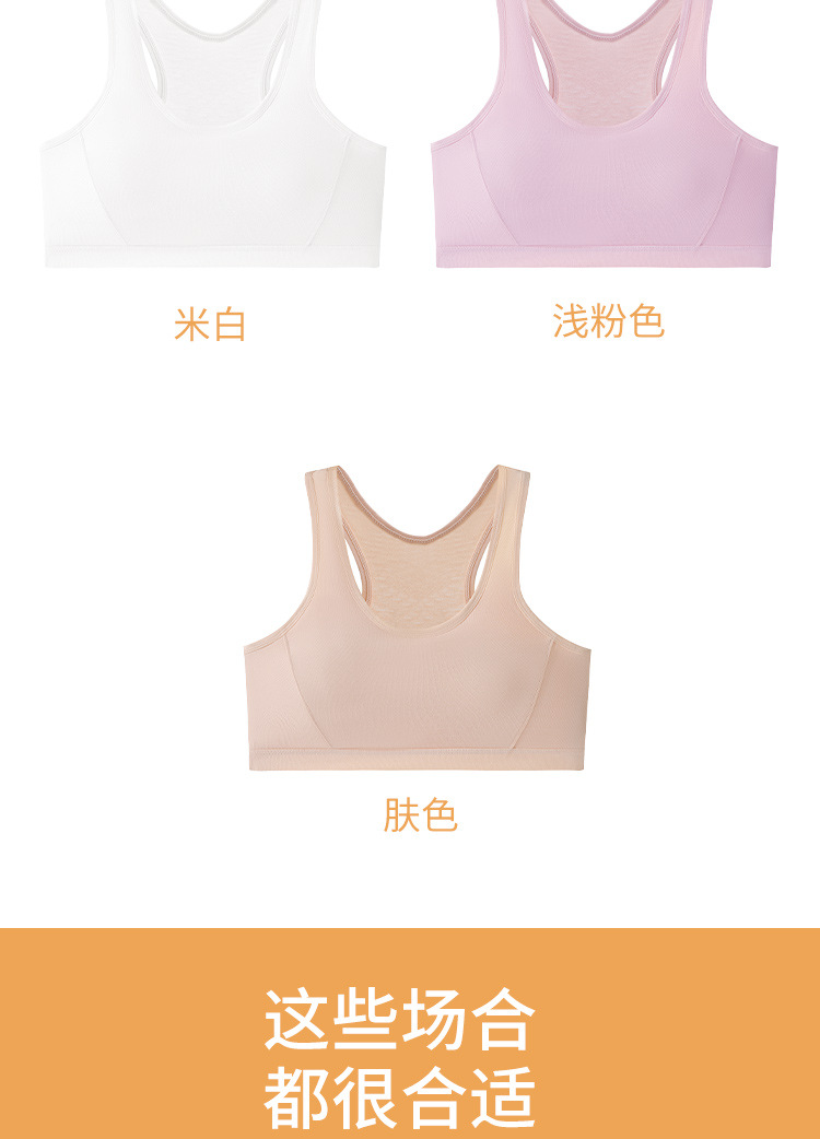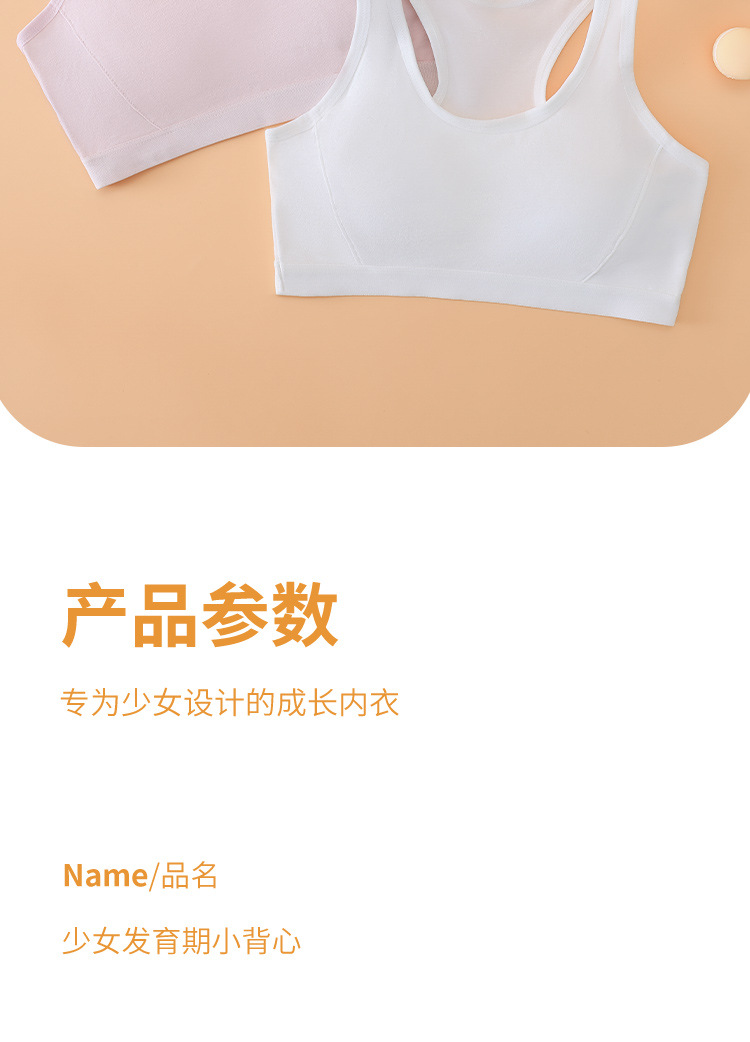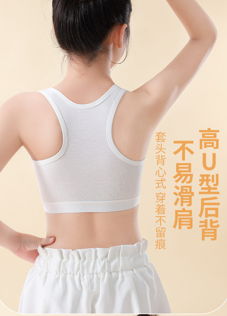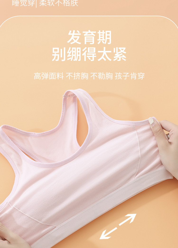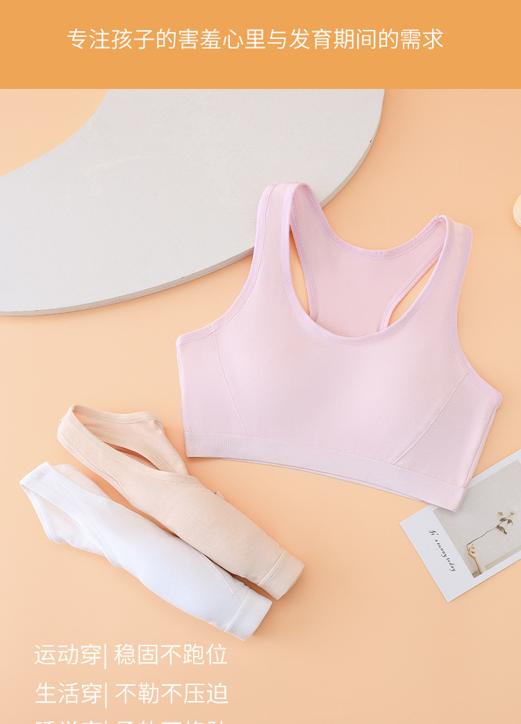 女童发育期纯棉少女文胸小学初中生固定杯运动防震背心无钢圈内衣