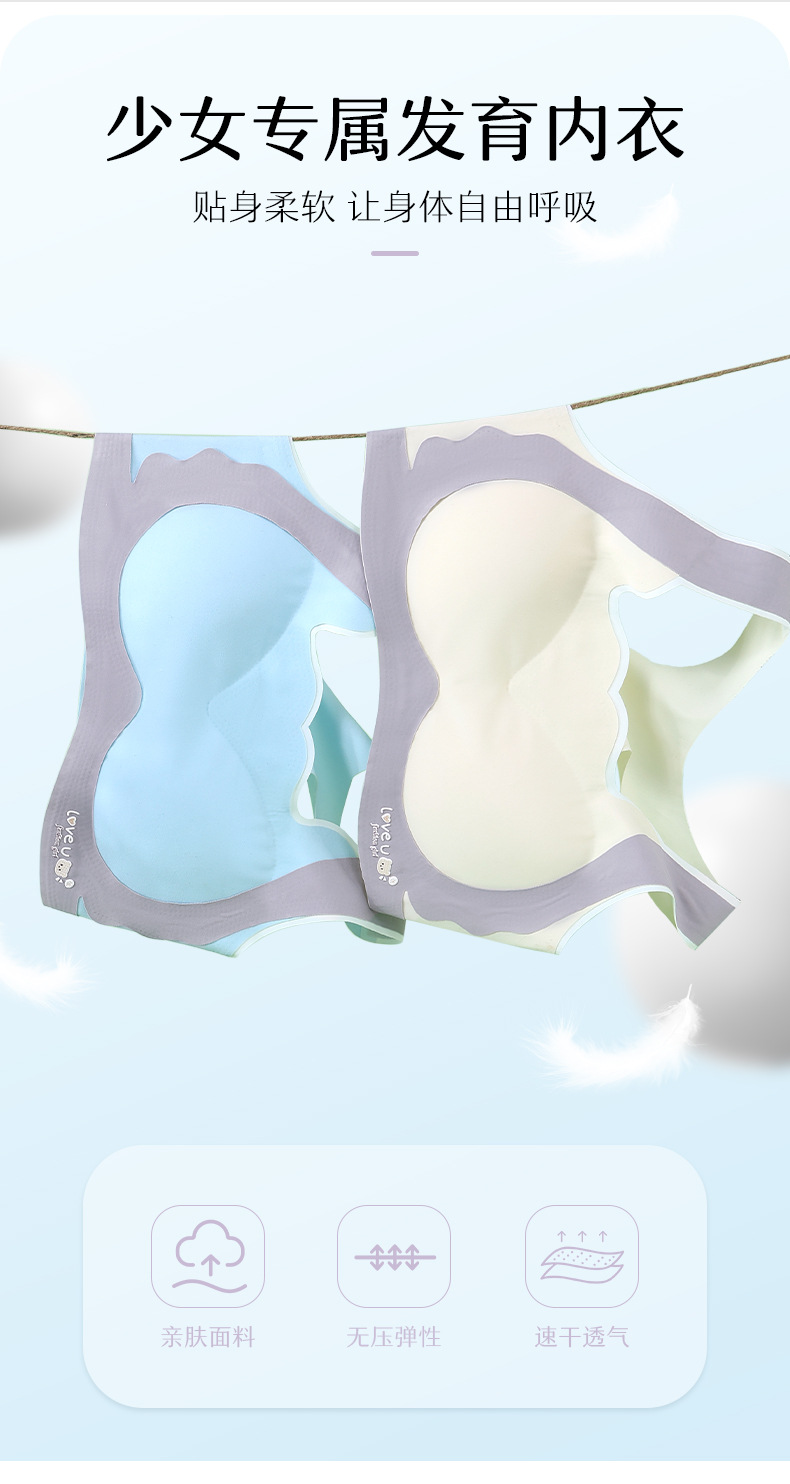 初中生儿童发育期少女款内衣无痕冰丝女童二阶段文胸小背心高中生