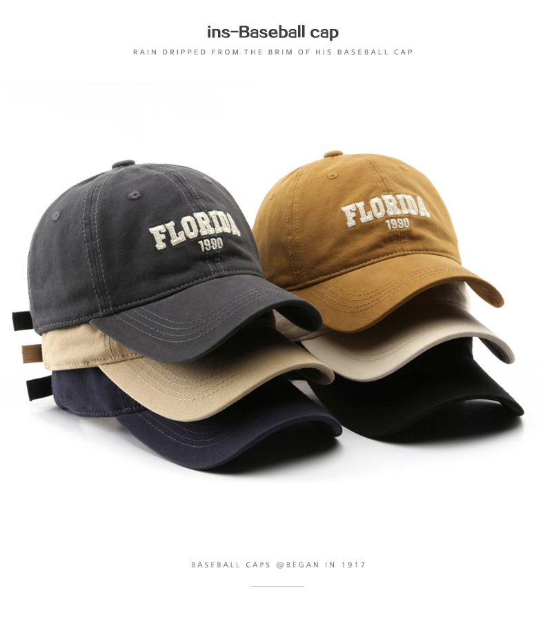 日系复古女春秋水洗棉字母刺绣鸭舌帽户外出行男防晒遮阳棒球帽