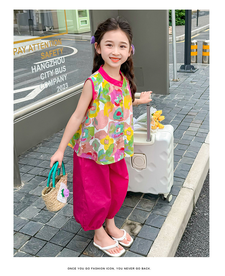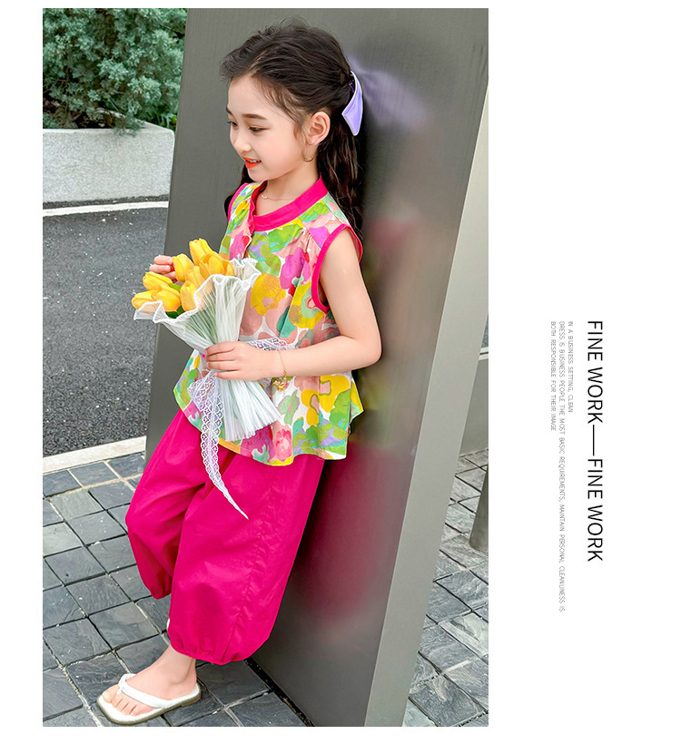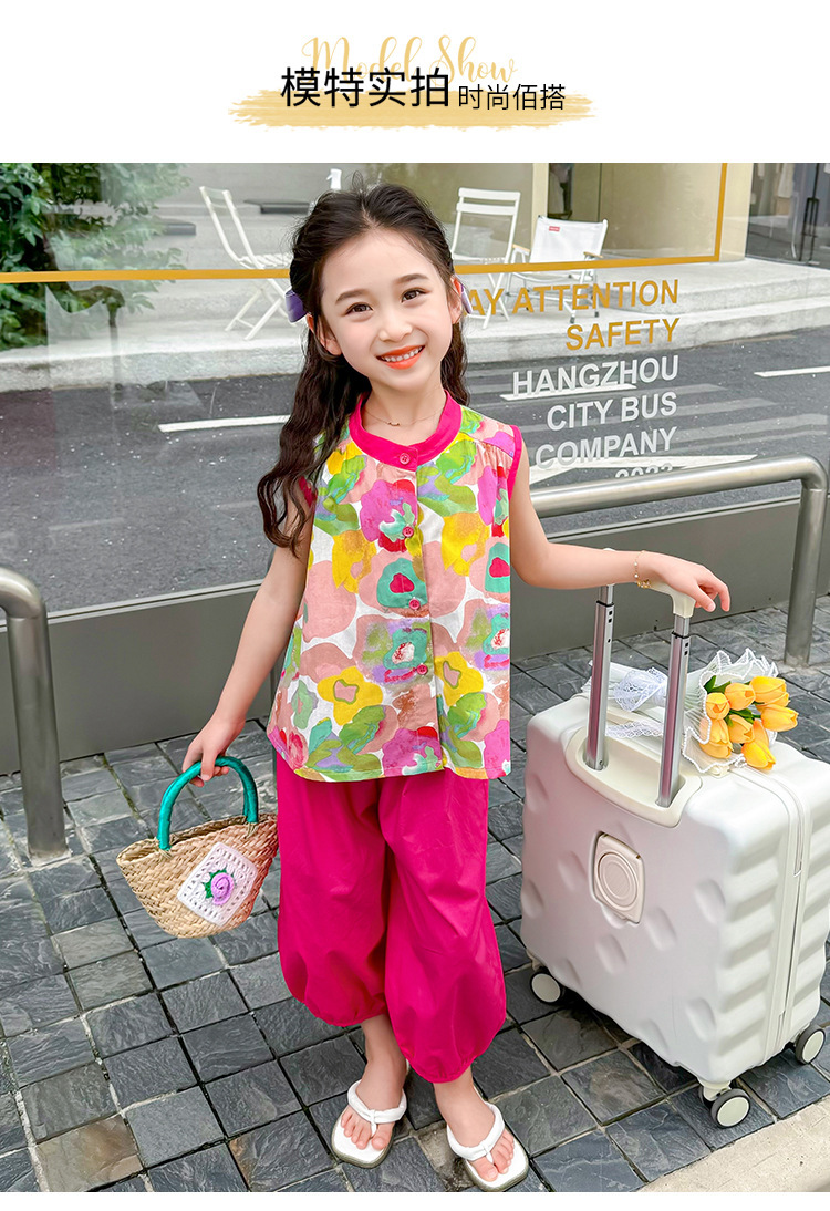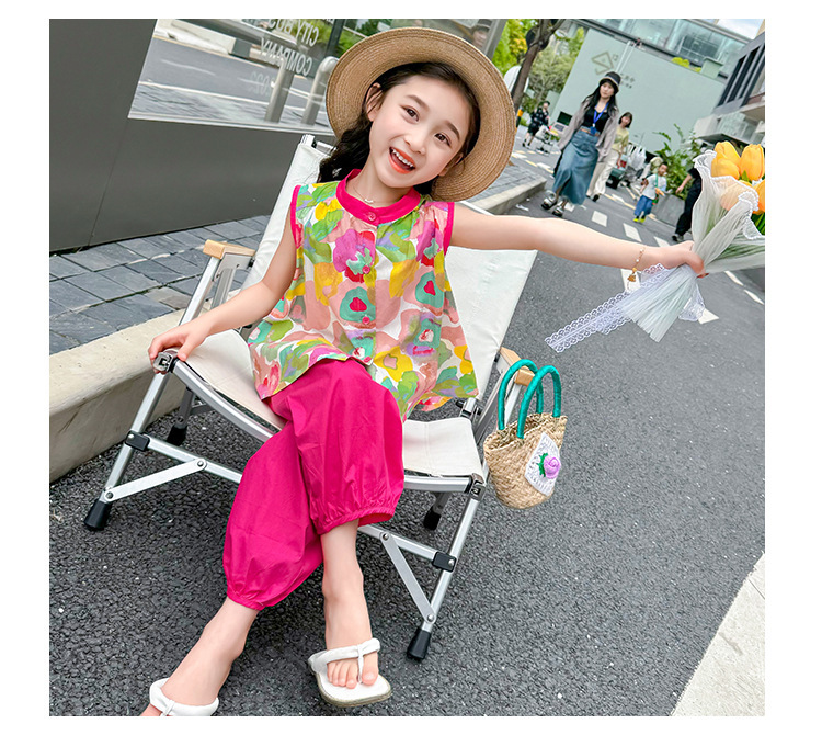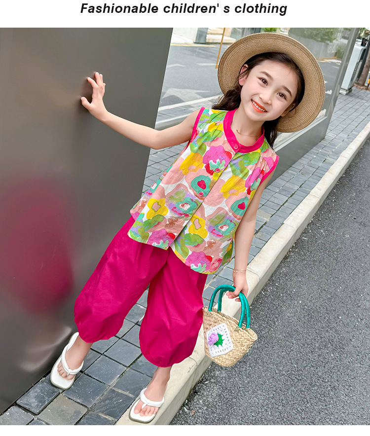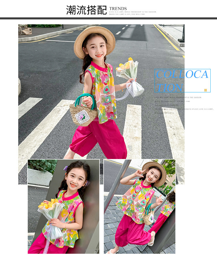 女童套装儿童夏季碎花上衣时髦阔腿裤2024新款女宝宝夏装两件套潮