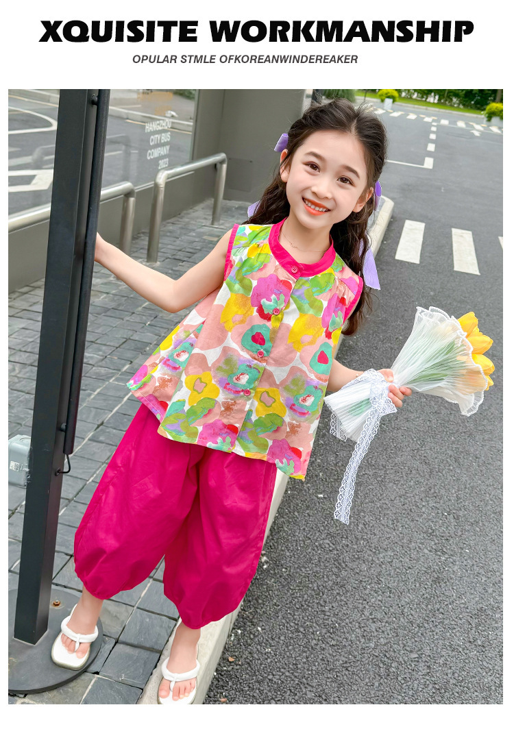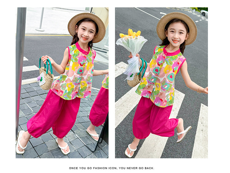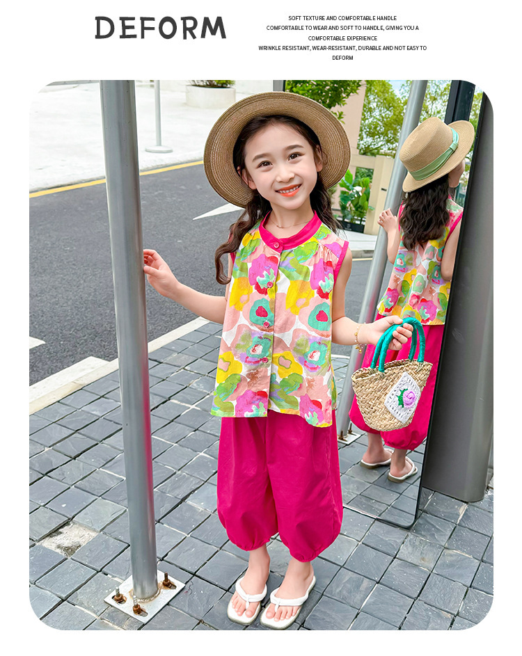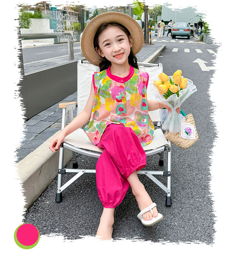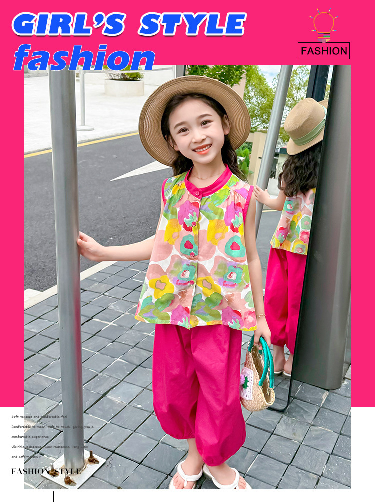 女童套装儿童夏季碎花上衣时髦阔腿裤2024新款女宝宝夏装两件套潮