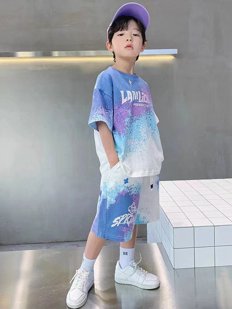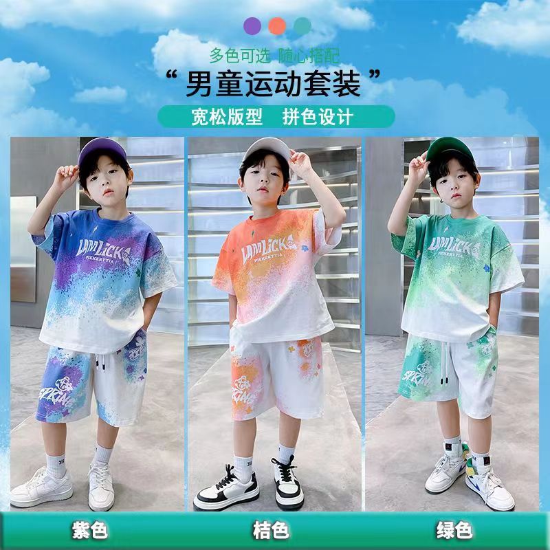 儿童装男童夏装套装2023新款夏季速干衣运动表演男孩足篮