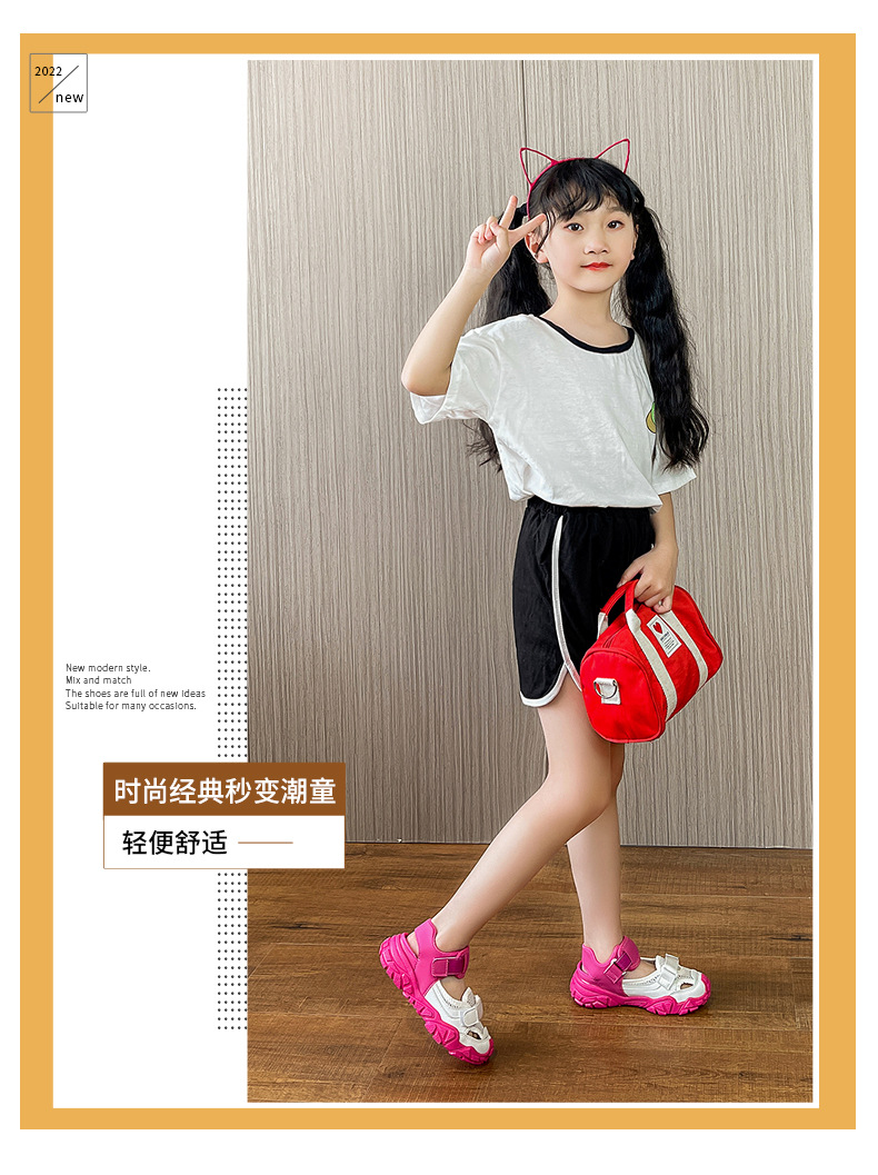 女童凉鞋儿童2023年新款夏季单网框子鞋透气中大童运动镂空沙滩鞋