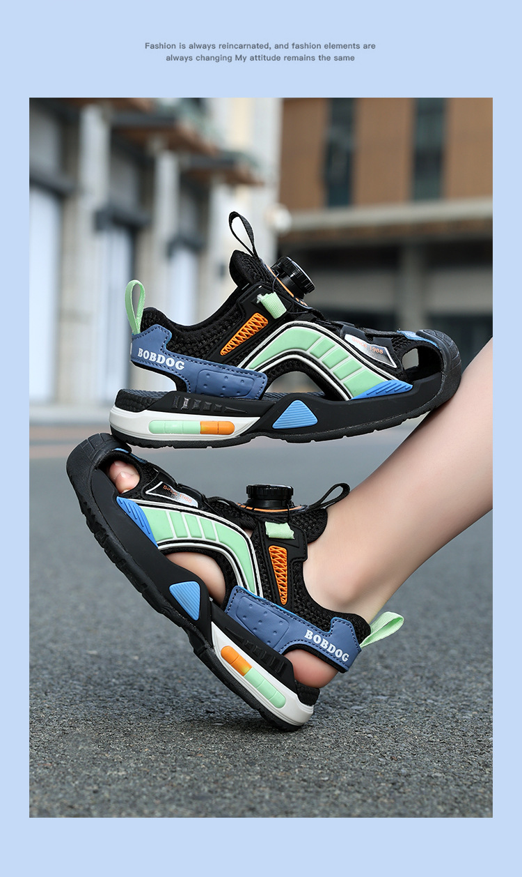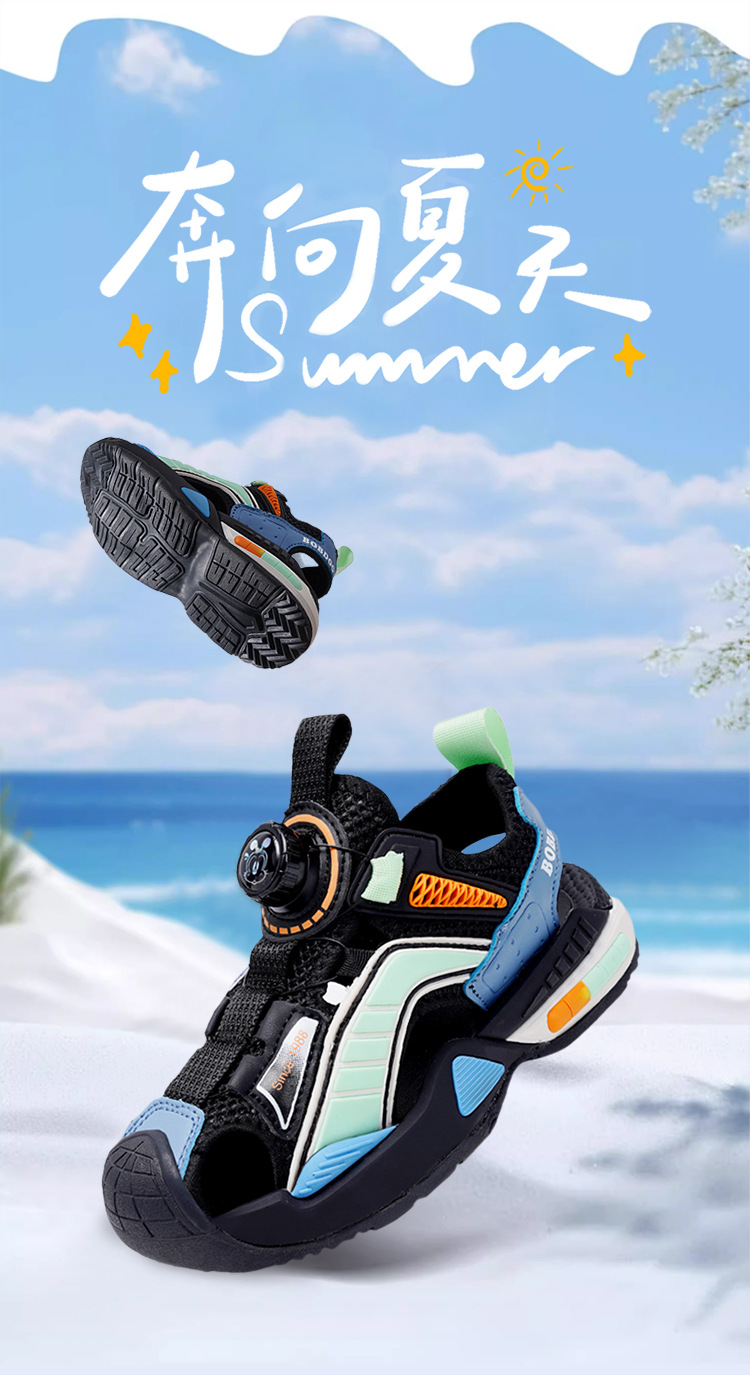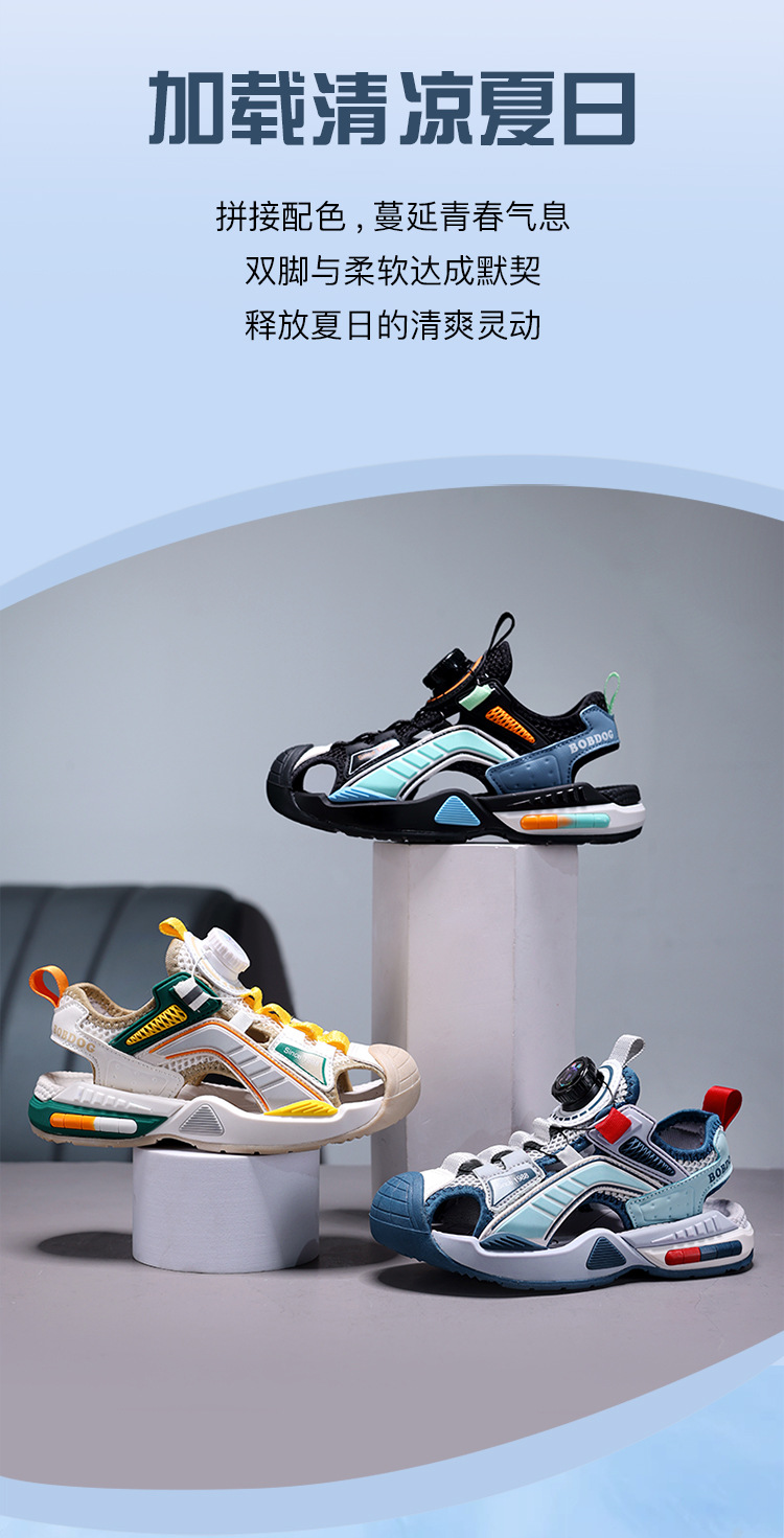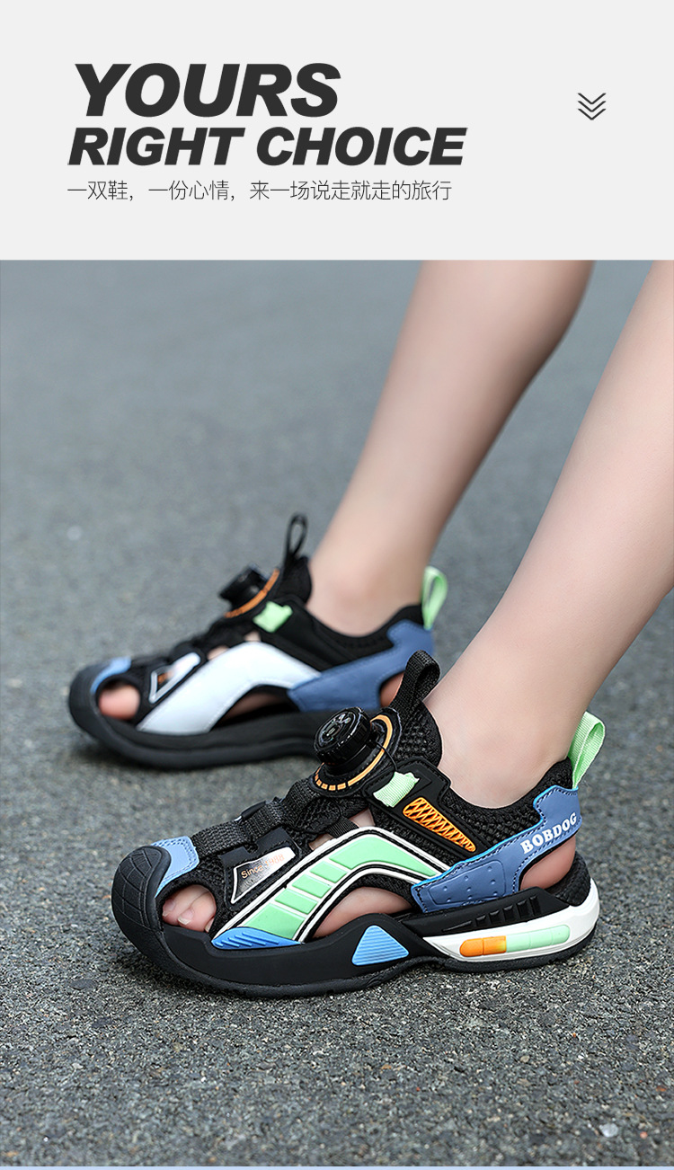 巴布豆男童鞋子夏季2024新款儿童运动凉鞋中大童男孩包头沙滩凉拖