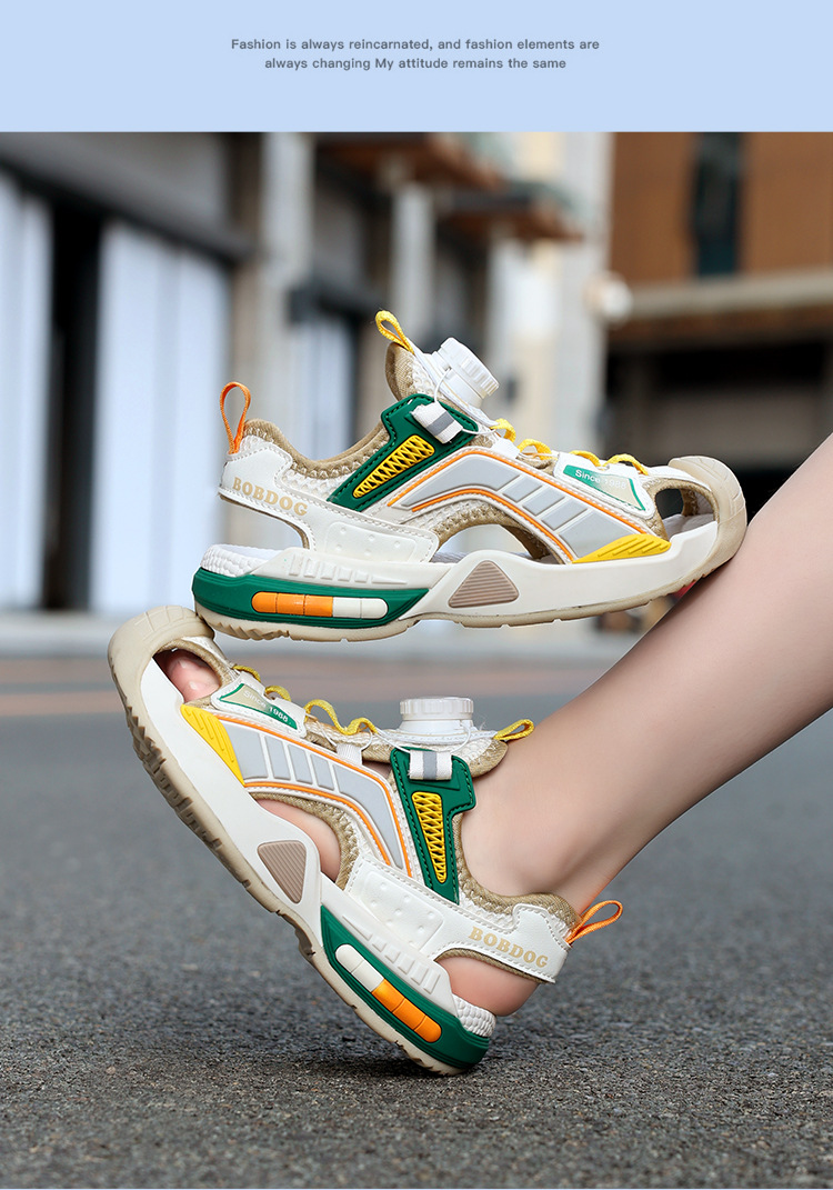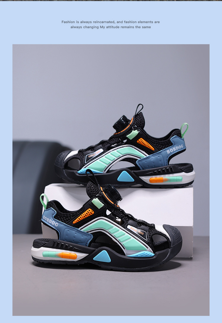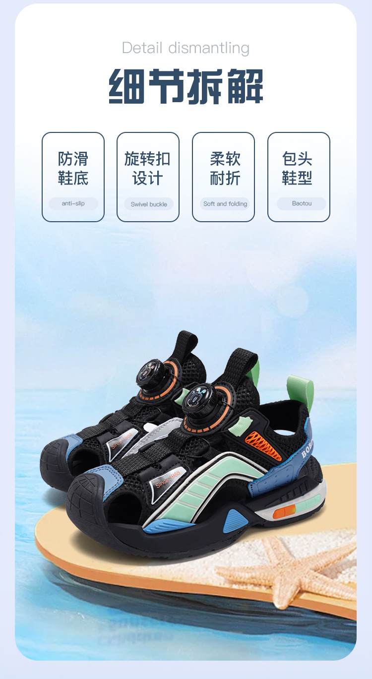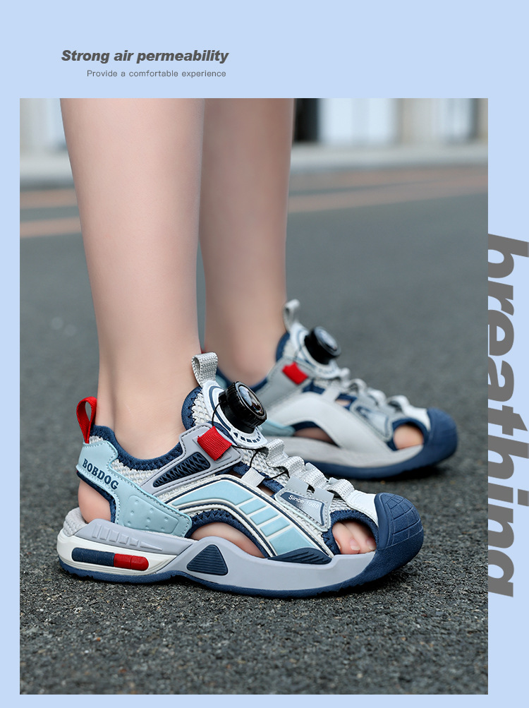 巴布豆男童鞋子夏季2024新款儿童运动凉鞋中大童男孩包头沙滩凉拖