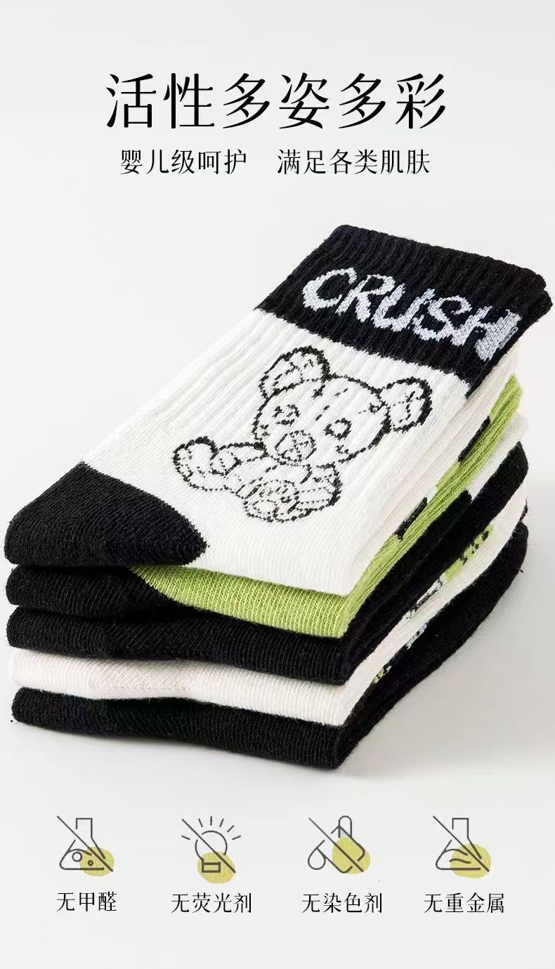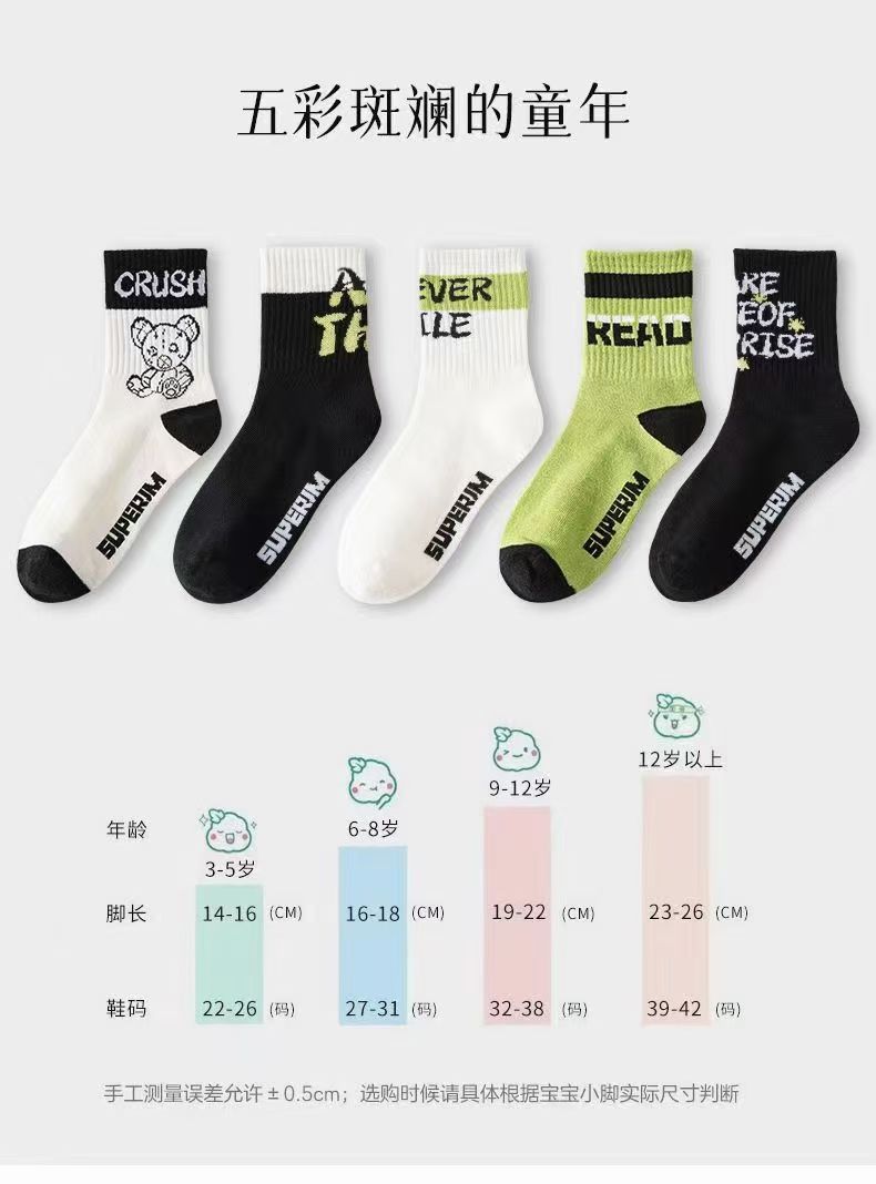 儿童袜子吸汗透气春秋款男孩防臭袜卡通运动抗起球秋季中筒袜批发