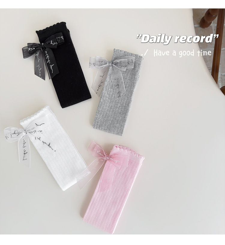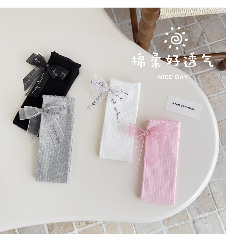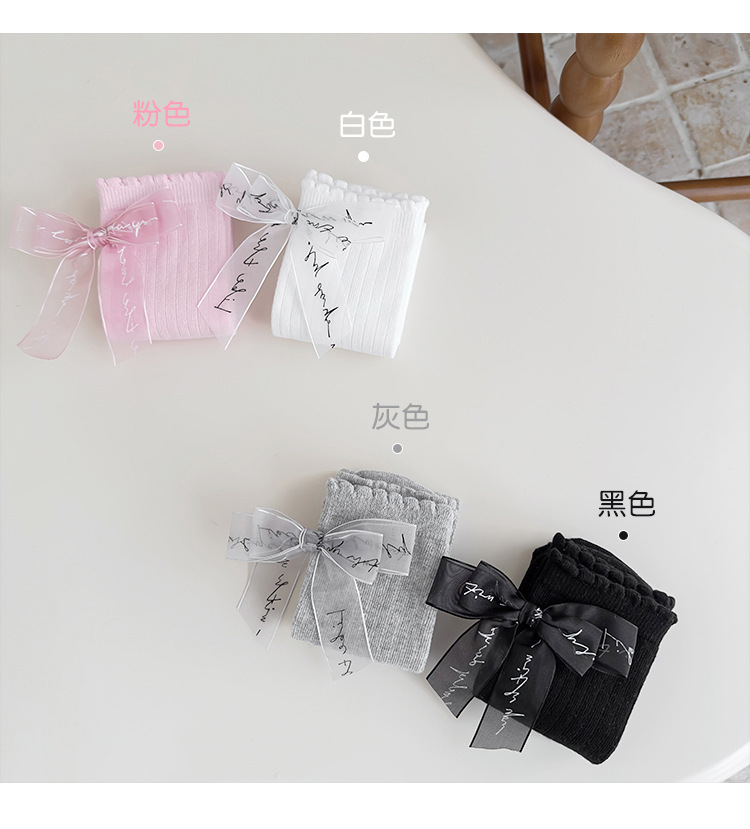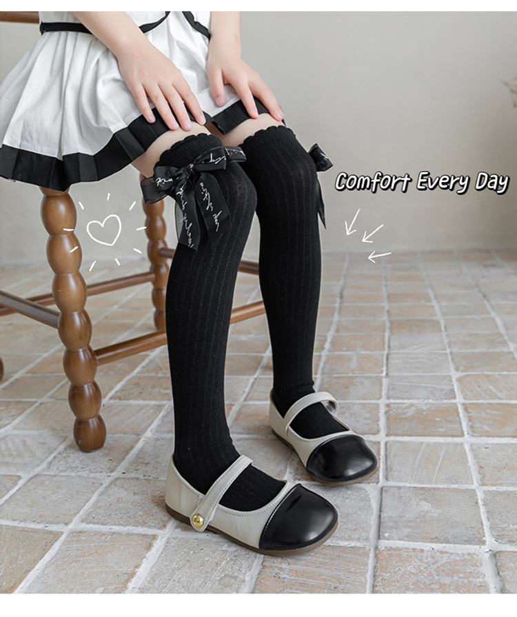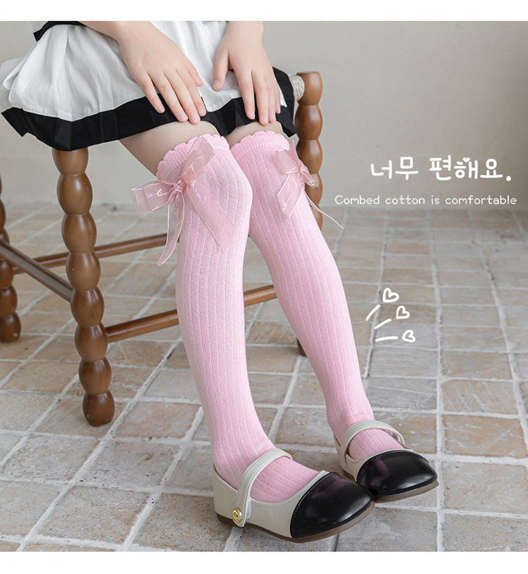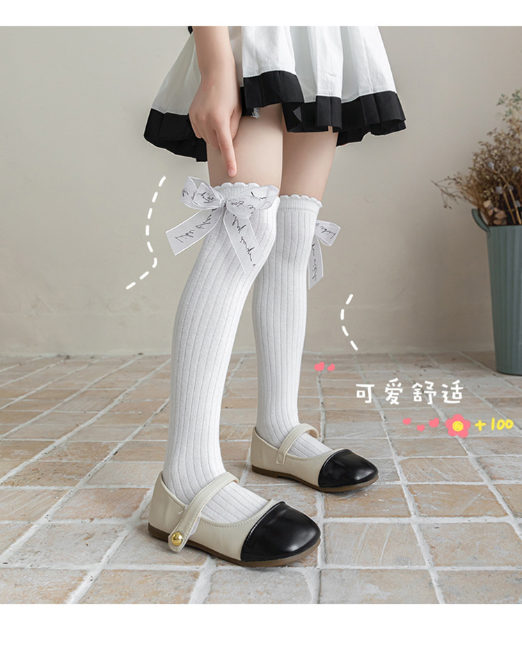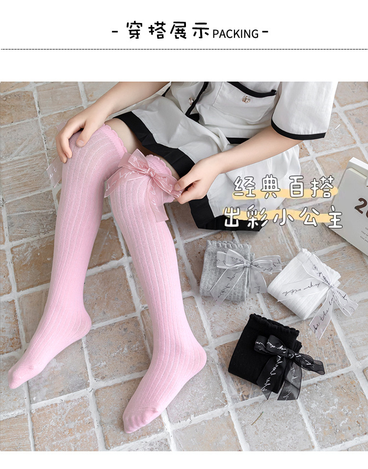 女童过膝儿童长筒袜薄款蝴蝶结女孩中筒公主袜百搭宝宝春秋高筒袜
